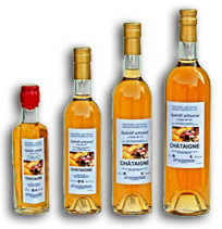 Apéritif à la ChâtaigneSon goût délicat rappelle le marron, associé à la vanille. Le vin blanc qui la supporte est souple et généreux. Il ne doit pas l’écraser mais la mettre en valeur. Ce breuvage pourra se servir comme apéritif ou en accompagnement d’un foie gras ou encore pour déglacer quelques préparations salées. |